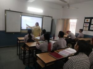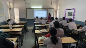 The Smart Classrooms at Ankur School blend traditional teaching with modern technology to create an interactive and engaging learning experience. Equipped with smart boards, projectors, and high-speed internet, these classrooms bring lessons to life through visuals, animations, and multimedia content. This digital integration enhances understanding, encourages participation, and makes learning more effective and enjoyable for students across all grades.