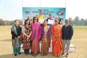 Ankur School proudly organized its Annual Sports Day at the prestigious University Ground, Chandigarh, showcasing the spirit of sportsmanship, teamwork, and athletic excellence. The event witnessed active participation from students of Classes VI to XI, who displayed remarkable enthusiasm and competitive spirit across various sports activities. The event was graced by Ms. Radhika Singh, HCS, Joint Secretary Home and Joint Secretary Finance, Government of Haryana , as the Chief Guest. In her inspiring address, she emphasized the importance of sports in holistic development and encouraged students to pursue physical fitness alongside academics. The school had the honor of welcoming Dr. Rakesh Malik, Sports Director, Panjab University, Chandigarh, as the Guest of Honour, who motivated the young athletes with his insightful words on discipline and perseverance in sports. Adding further prestige to the occasion, Dr. Dolly Khanna, Deputy Director, Physical Education and Sports, attended as the Special Guest. She commended the school’s efforts in promoting physical education and nurturing young talent. The event concluded with prize distribution ceremonies, recognizing outstanding performances and applauding the dedication of all participants. The Annual Sports Day was a resounding success, leaving students, teachers, and parents inspired by the spirit of healthy competition and camaraderie.